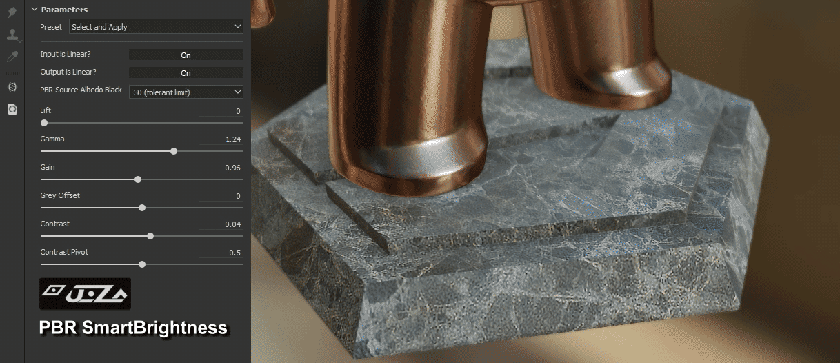 Designed to work seamlessly with authored PBR materials/textures, now you can adjust brightness in various ways without worrying about mangling the PBR range or clipping the values. The functions are intertwined so they affect each other in a fast and smart way.